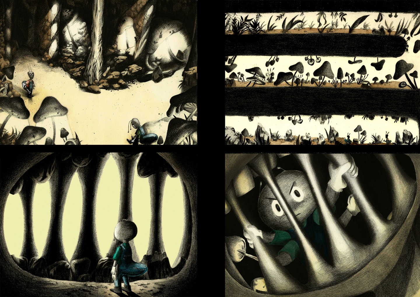 동굴 안에는 버섯으로 만든 램프가 빛을 비추고, 동은 램프의 빛에 의지해 료를 찾는다.