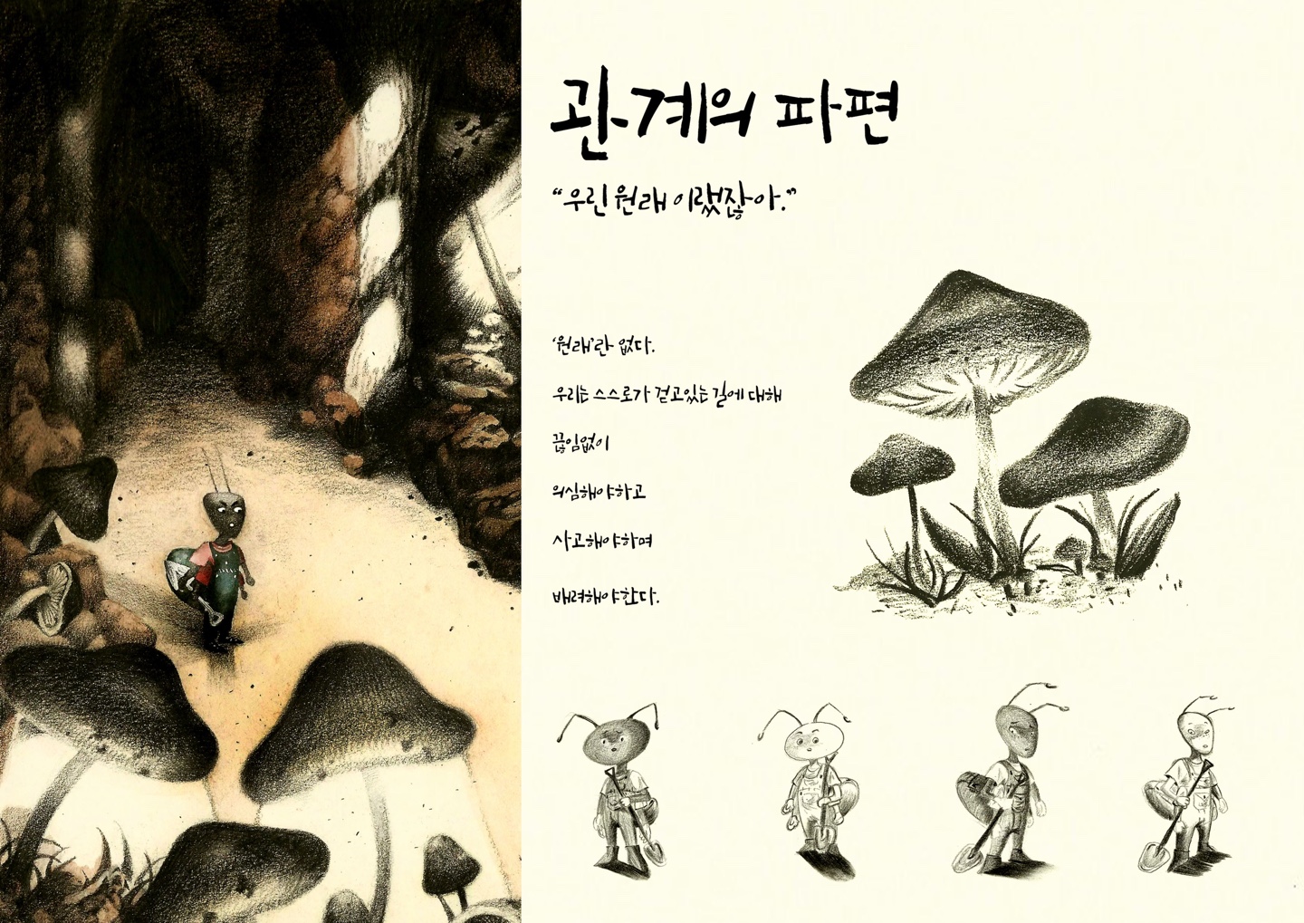 료의 비명소리에 동은 고개를 돌려 다시 땅을 파기 시작한다. 근처에 있던 다른 개미들도 료를 무시했다.