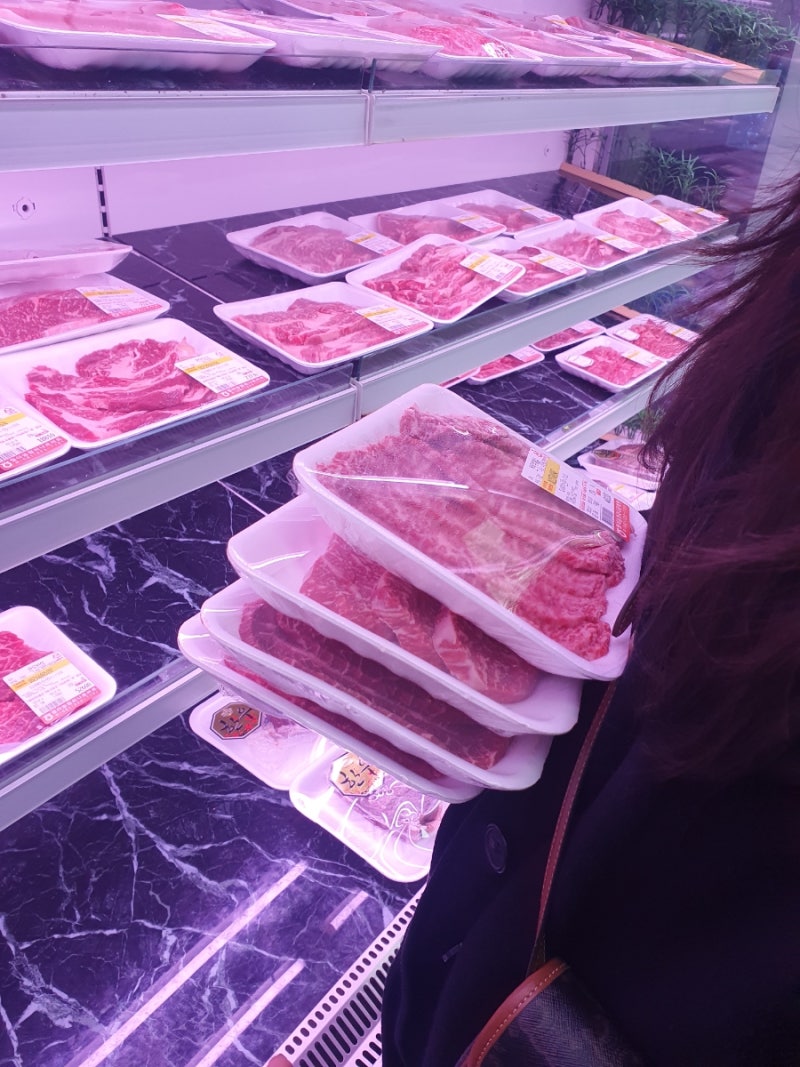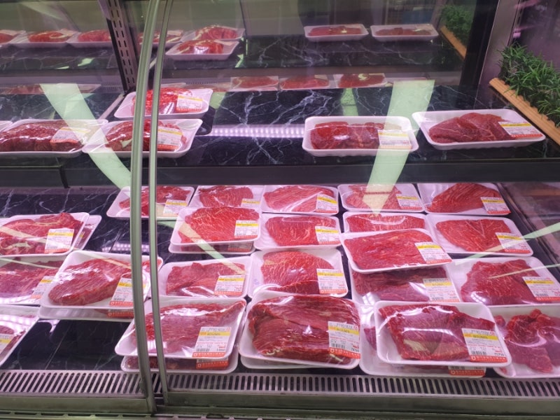 고기를 사려면 정육점처럼 옆집 한유마을 식당에 가서 테이블 값을 지불하면 된다. 하나로마트에서 고기를 사서 한유마을로 친구들과 밥을 먹으러 가는 분들이 많습니다. 우리는 집에서 회의를 하기로 결정하고 몇 팩만 사서 떠났습니다. 늦을 수도 있고 육회가 없을 수도 있습니다.