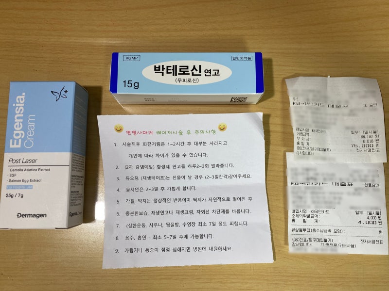 선생님이 130개 정도 빼셨다고 하셔서… ^^ 아니 얼굴에 100개 넘게 나왔던 건가요? ? 놀랐는데 알고보니 여기에서 하나를 제거해도 레이저를 두 번 쏘면 둘로 셉니다.