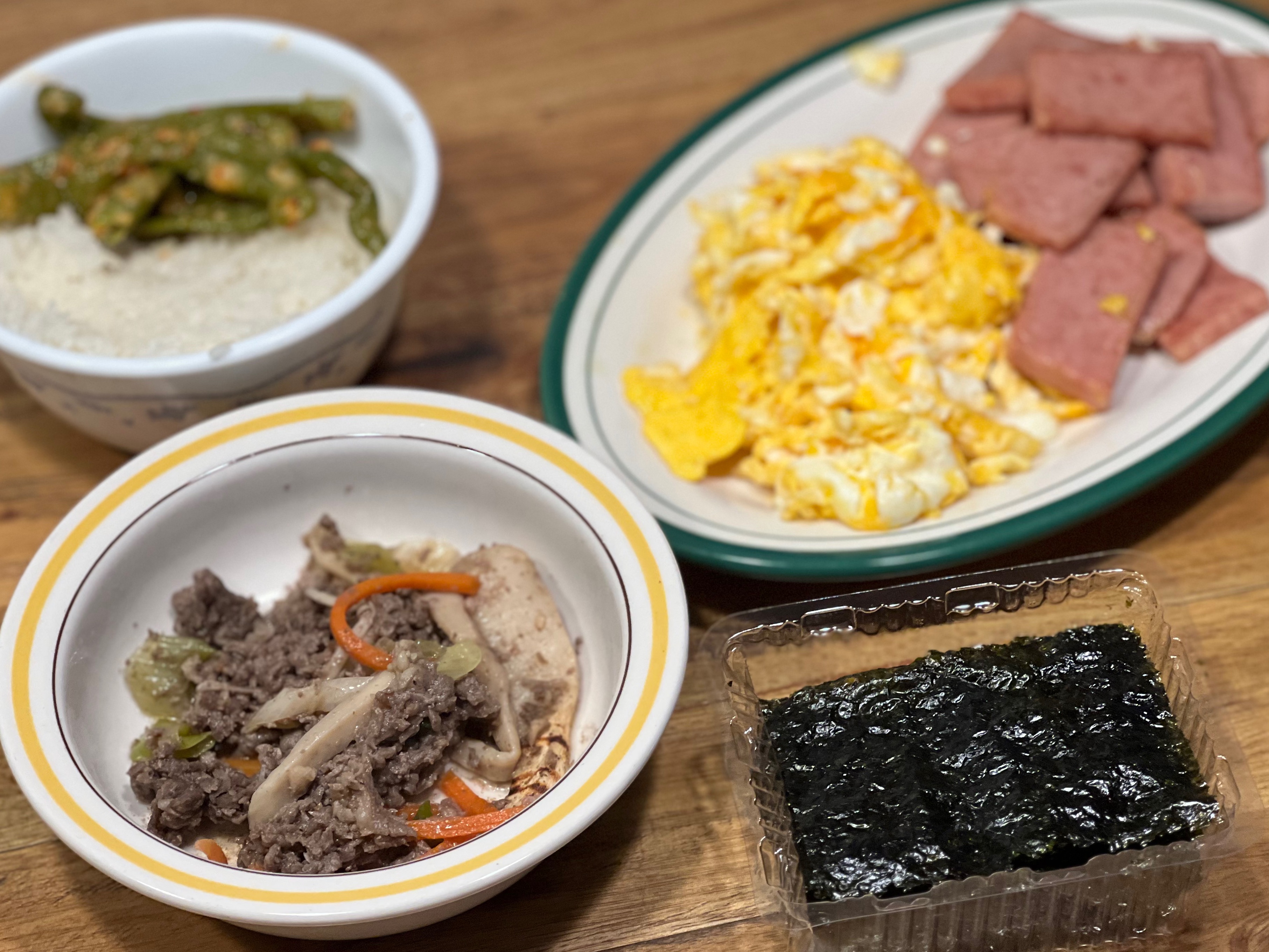 – 석식: 불고기, 스크램블 에그, 스팸, 김
