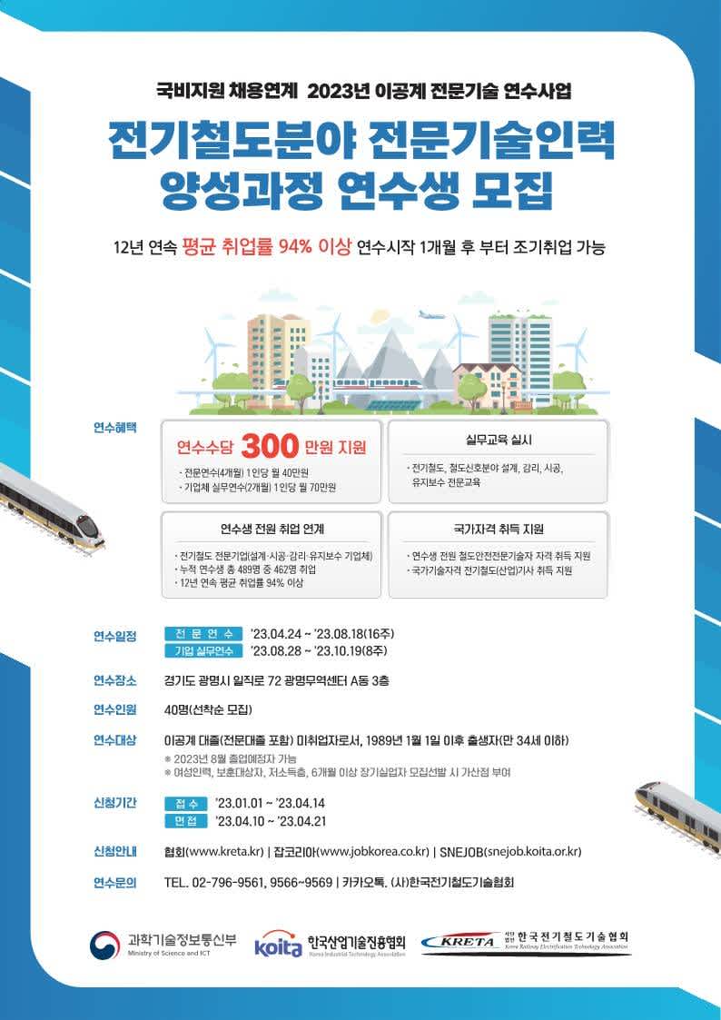 2023년 환경기술 전문인력 양성과정 모집공고 관련 문의는 아래 문의처를 참고해주세요!한국환경산업기술원 기업육성실 02-2284-1719/1718 전문인력학사관리시스템